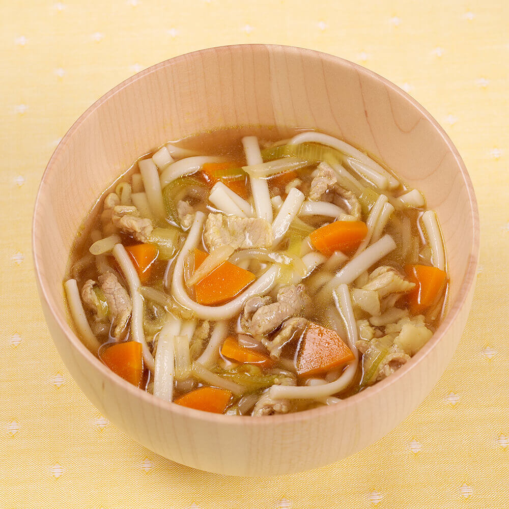 | 4 | Add the seasonings and simmer further. Finish by adding the potato starch slurry and mixing to thicken. Place noodles in bowls, pour the soup from step 3 over them, and top with the vegetables from step 2. |