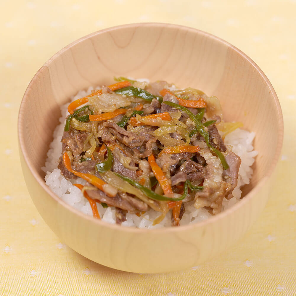 | 3 | Heat sesame oil in a frying pan and stir-fry the pork mixture (2) well. Add the pork strips (1) and stir-fry. Season with salt to taste. |