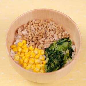 | 4 | Place the stir-fried mixture (3) on top of cooked rice. |